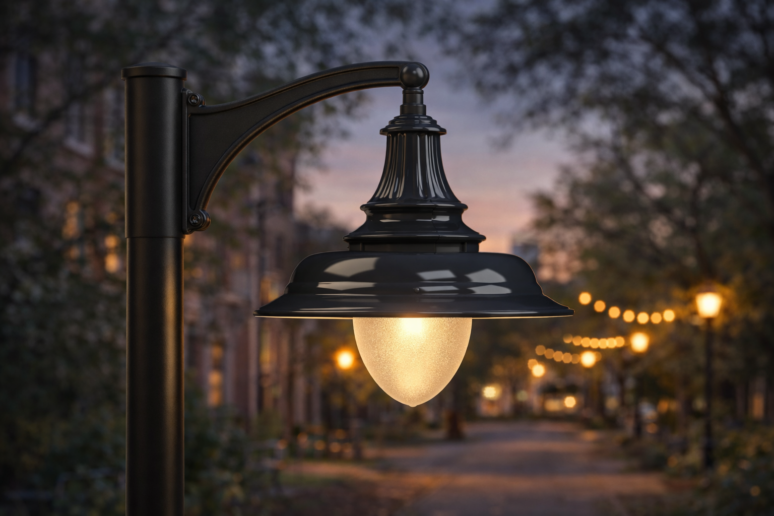 The F199 Series luminaire shall consist of an injection-molded prismatic diffuser, a spun aluminum shade assembly and a cast aluminum fitter (capital). The hinged refractive diffuser shall be secured with stainless steel hardware. The LED shall feature quick disconnect plugs for easy maintenance. The LED shall be factory wired, tested and mounted on a keyholed cast aluminum plate. All electrical components shall be UL listed and labeled.